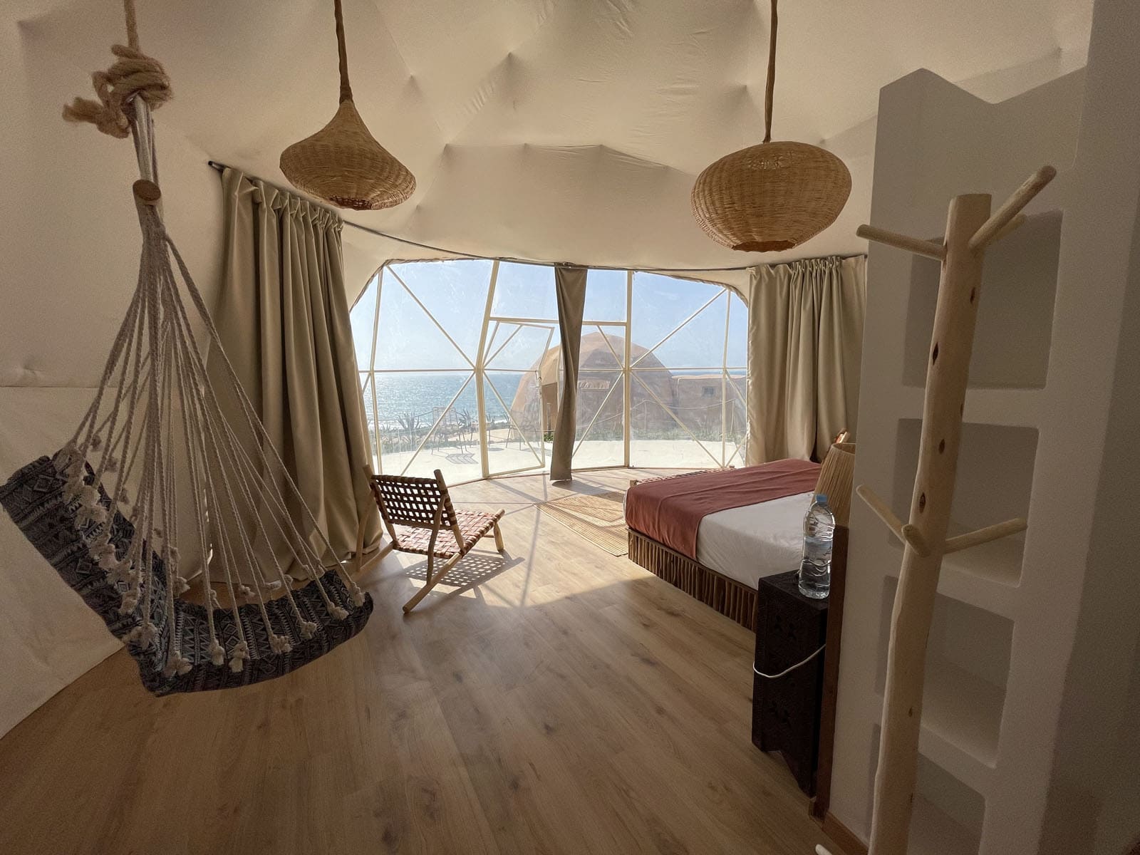 Ce dôme Deluxe indépendant de 40 m2 équipé d’un lit King Size vous séduira par sa vue époustouflante sur la mer. Pour votre bien-être, votre dôme Deluxe dispose d’une salle d’eau privative avec douche italienne, coin lavabo et toilettes séparés. Côté extérieur, une terrasse à 180° vous accueillera pour mieux vous reposer ou profiter d’une vue et de sensations inégalées.